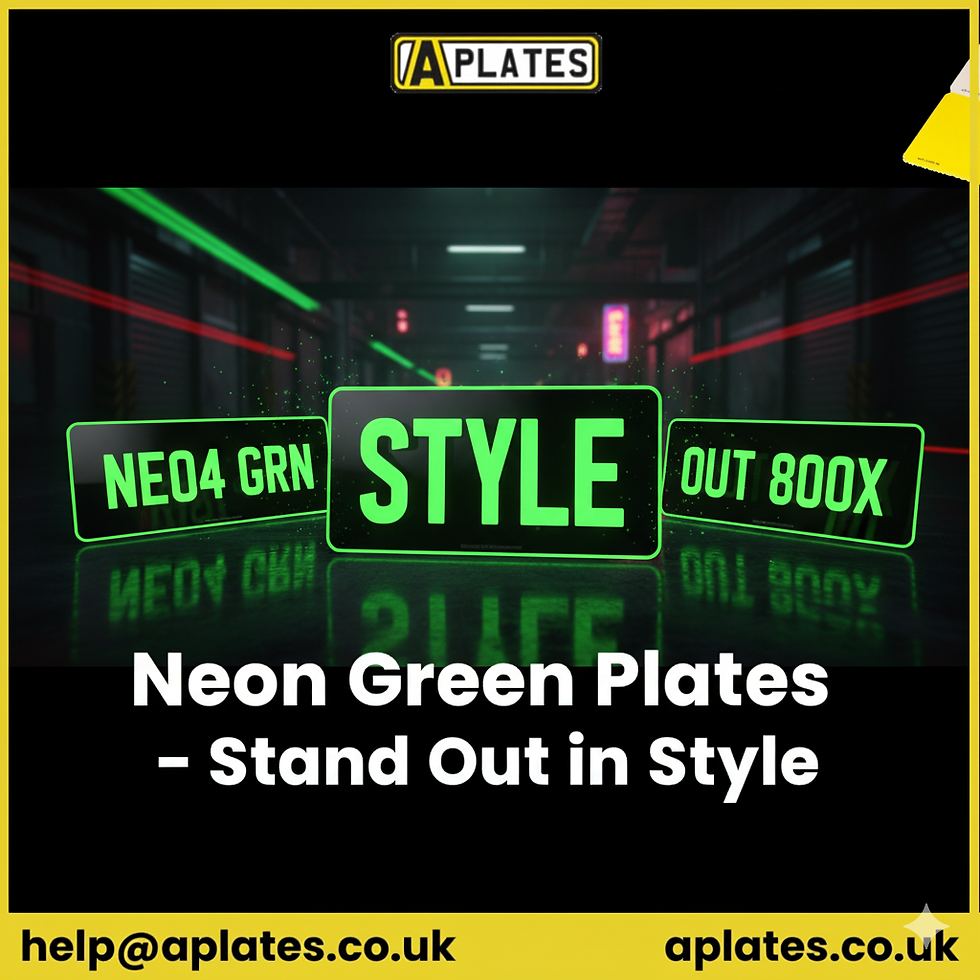 Make a bold statement with neon green plates from Aplates. Perfect for shows and exhibitions, these plates are designed to grab attention with their vibrant finish. Crafted with expert care, neon green plates from Aplates combine striking design with durability, ensuring they stay looking sharp. While intended for display purposes, these plates are ideal for drivers who want to showcase creativity and flair. Aplates, the UK’s leading number plate manufacturer, delivers show plates that truly stand out. Add energy and colour to your vehicle with neon green plates today.